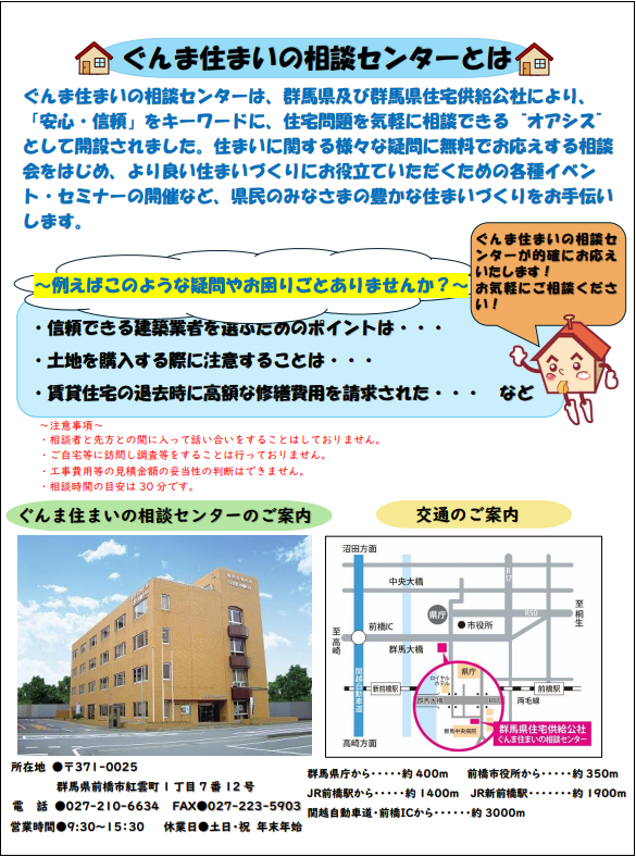 ぐんま住まいの相談センターとは?ぐんま住まいの相談センターの業務のご案内。