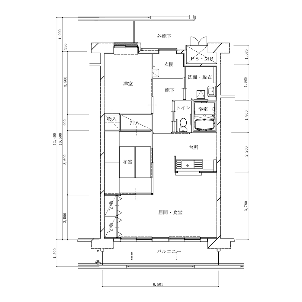 - 詳細6/洋5.5/DK、水洗トイレ、浴槽釜設置