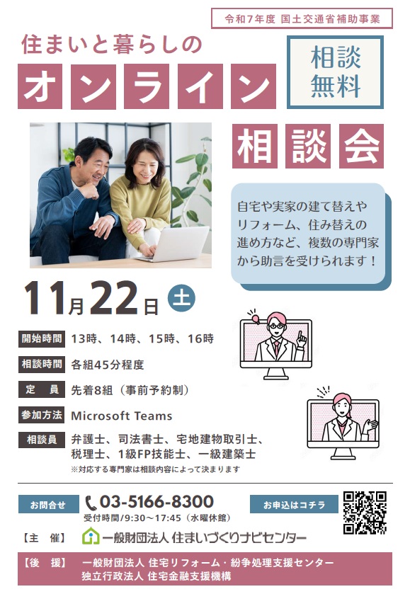 受けられます。詳細については、こちらをご確認いただくか、一般財団法人 住まいづくり